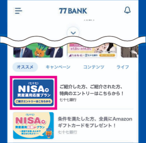 「オススメ」の「NISAで資産運用応援プラン ご紹介エントリーはこちらから」をタップします。