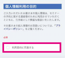 「個人情報利用の目的」について、同意をいただける場合は、「利用目的に同意する」のチェック欄をタップします。