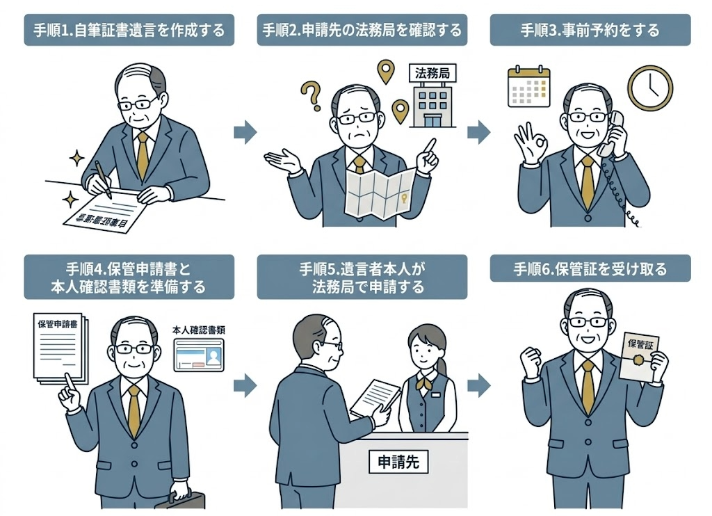 まずは、自筆証書遺言を作成します。これは制度を利用するための前提条件です。